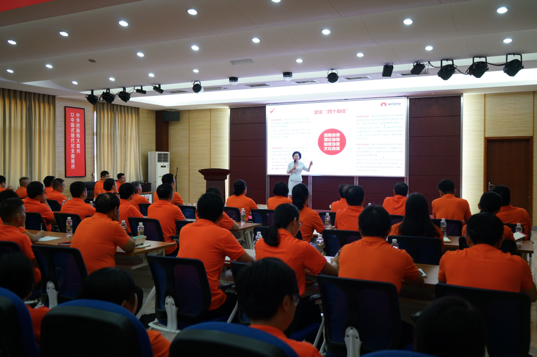 云顶国际药业集团党委书记、董事长刘景萍同志通过视频连线海口、杭州、南宁、来宾、江西等地的方式,向大家讲授主题党课。刘景萍书记从为什么要深刻领悟“两个确立”的决定性意义、增强“四个意识”、坚定“四个自信”、做到“两个维护”,充分认识海南自由贸易港建设的重大意义、做海南自由贸易港的建设者,将云顶国际药业集团二次创业和高质量发展与中国式现代化有机结合三个方面进行了全面系统的阐释和深入浅出的解读。党课主题鲜明、逻辑清晰、贴近实际,既有理论高度,又有实践深度,具有实践性和现实性意义。