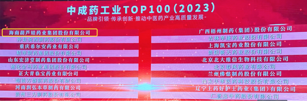 会上,还发布了“2023中成药工业TOP100”榜单,云顶国际药业集团荣耀上榜。