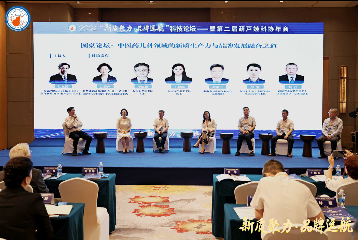 云顶国际药业集团党委书记、董事长刘景萍,海南大学药学院院长罗海彬、海南医学院药学院院长王艳丽、海南省精准医学研究会高级顾问李治平、海南省妇女儿童医学中心临床药学科主任邹俊,四川省中医药信息学会党委书记、常务副会长刘江等,在主题为“中医药儿科领域的新质生产力与品牌发展融合之道”的圆桌论坛中积极献策。海南省医药行业协会会长、齐鲁制药(海南)有限公司董事长刘文民主持论坛。